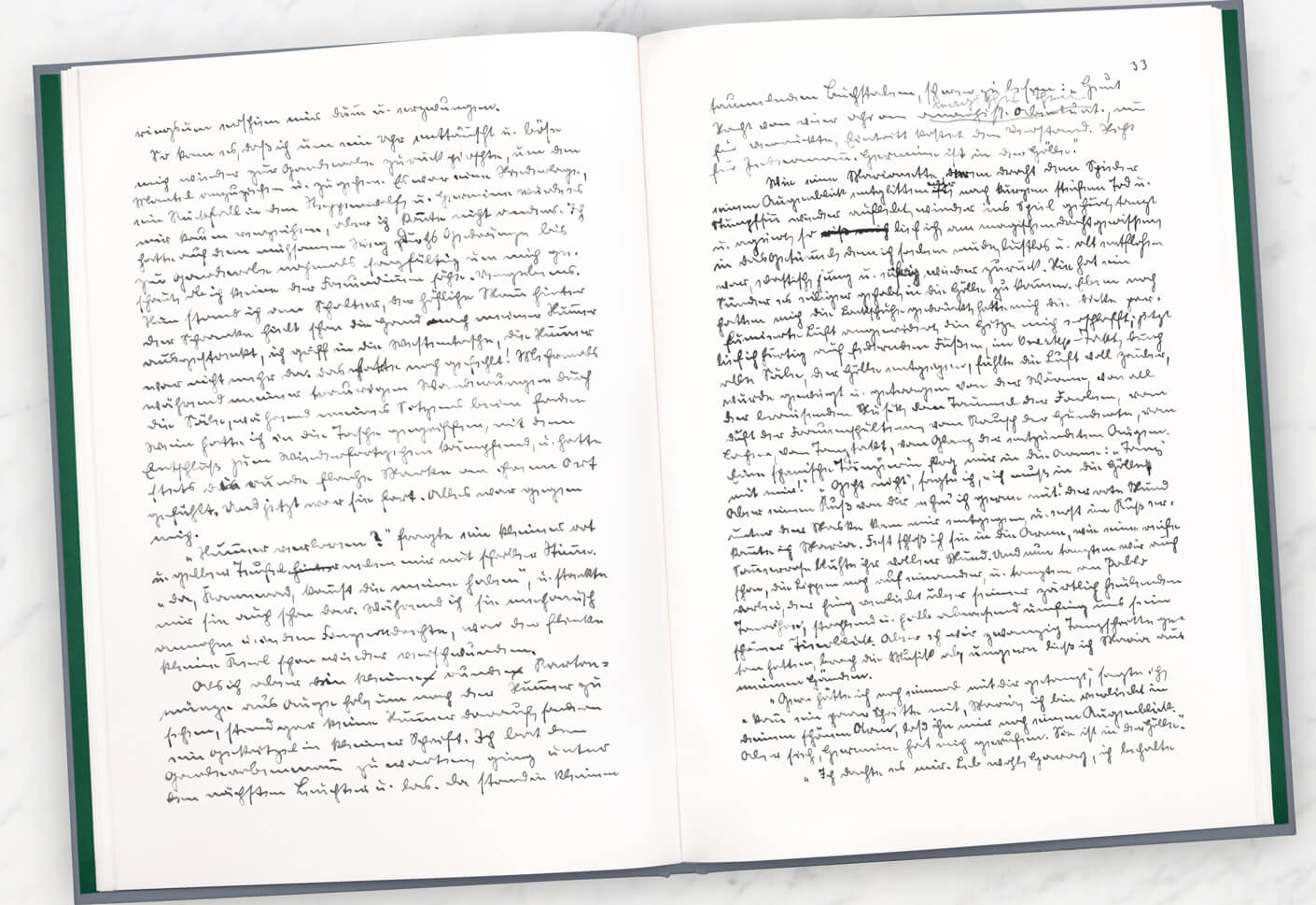 « Par exemple, le passage mentionnant la foi d’Hermione dans les saints, tel que Saint François d'Assise, est écrit au verso d'une feuille de calendrier avec l'aperçu de la semaine du 1er au 6 novembre 1926 » explique le spécialiste Rudolf Probst dans sa préface (voir plus bas).