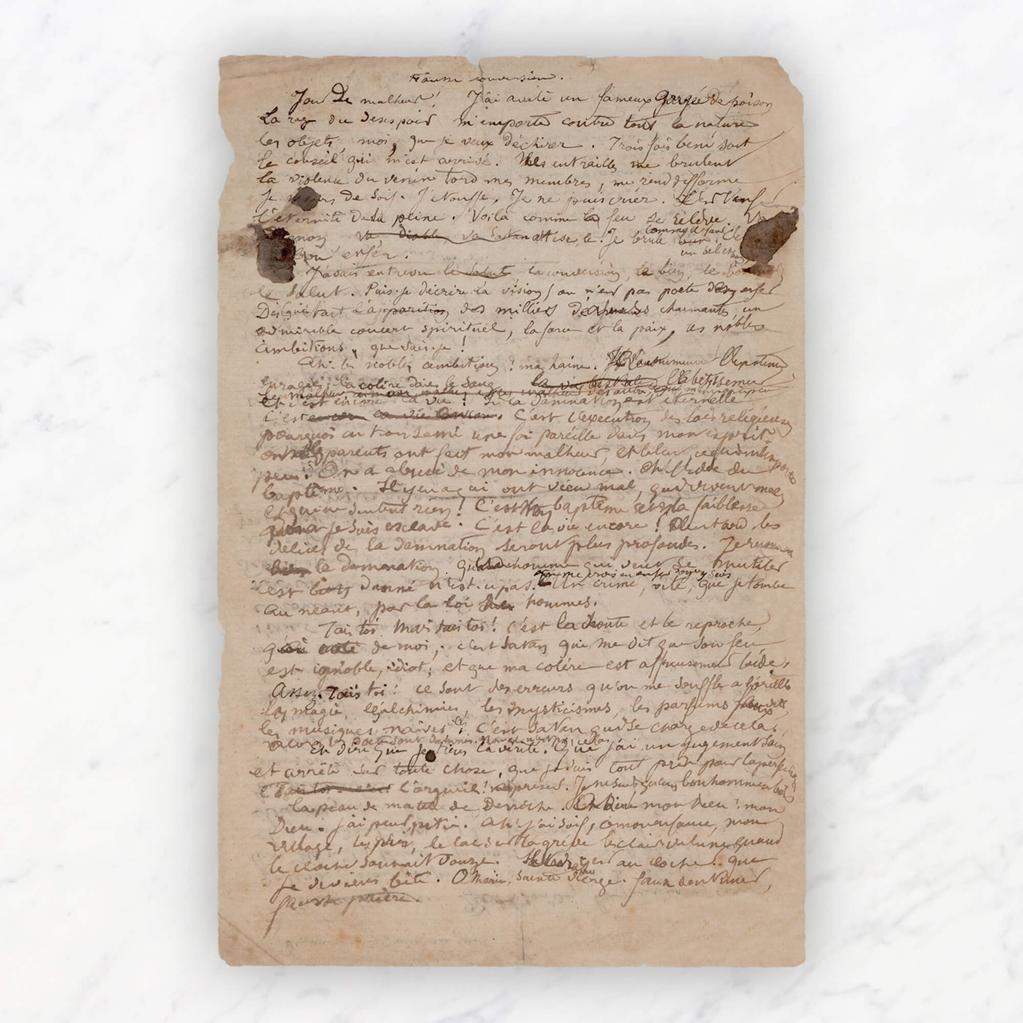 Ces quelques feuillets sont abondamment raturés, contrairement à un certain nombre d’autres manuscrits poétiques laissés par Arthur Rimbaud.