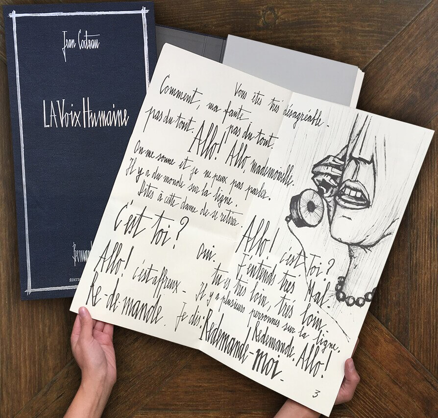 La Voix Humaine, illustrée et gravée par Bernard Buffet, est le résultat de l’union unique et magistrale de deux artistes majeurs du XXe siècle.